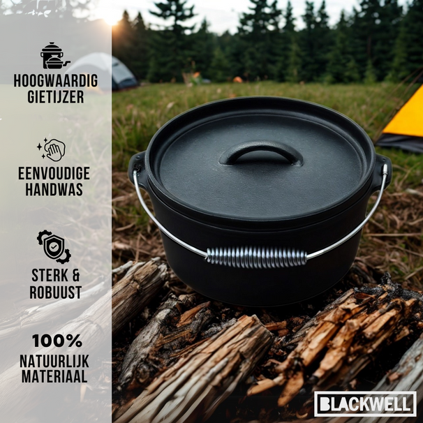 Blackwell Dutch Oven BBQ set Cast Iron - Casserole + Lifter, Frying Pan ø 20 cm & Sauce Pan 18 cm - 4 Pieces