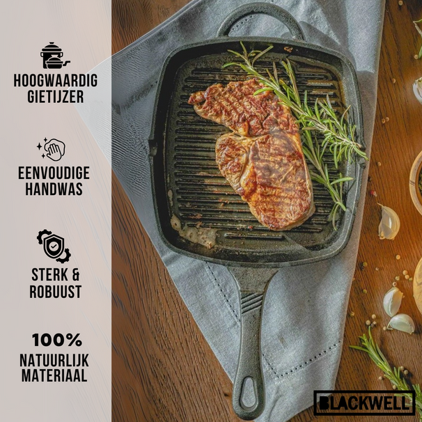 Blackwell Grill Pan Cast Iron / Skillet 23 x 23 cm - without non-stick coating