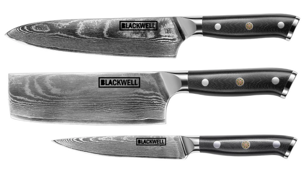 Blackwell Knife Set (Chef's knife + vegetable knife + office knive) ) - Japanese style - 67 layers damask steel - VG10 - 3 piece