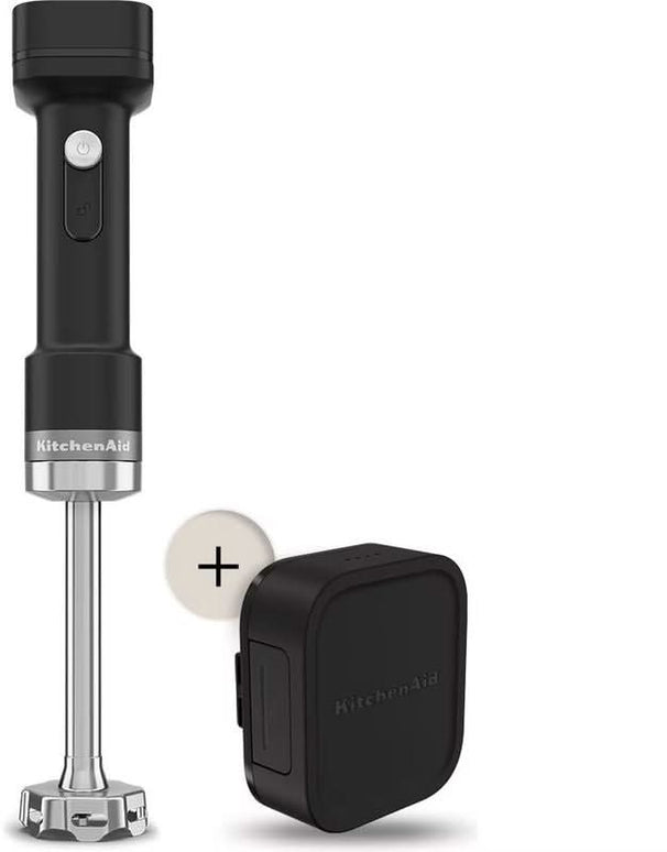 - KitchenAid hand blender: the hand blender you use for mashing, beating, mixing, emulsifying and chopping. The things you can do with the hand blender are quite similar to a food processor. The difference is that you use a food blender for larger quantities or harder ingredients. This is because the kitchen blender is more powerful. The hand blender is great for small quantities, such as: dips, spreads or baby food.