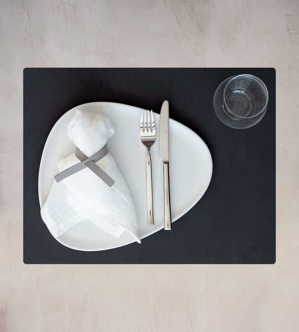 LIND DNA Placemats Hippo - Leather - Black Anthracite - 45 x 35 cm - 2 pieces