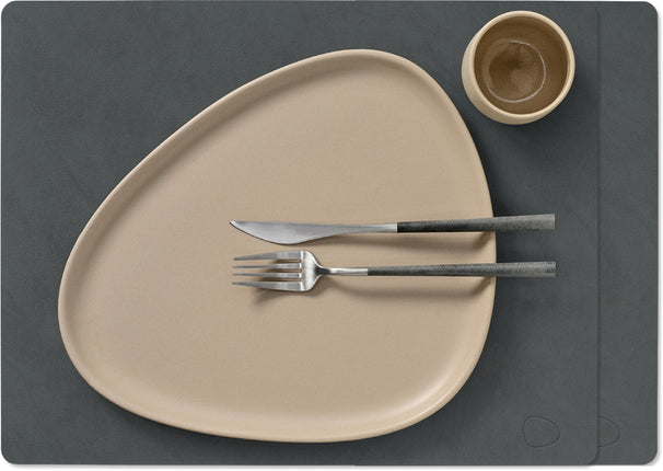LIND DNA Placemats Nupo - Leather - Flint Grey - Curved - 44 x 37 cm - 2 Pieces