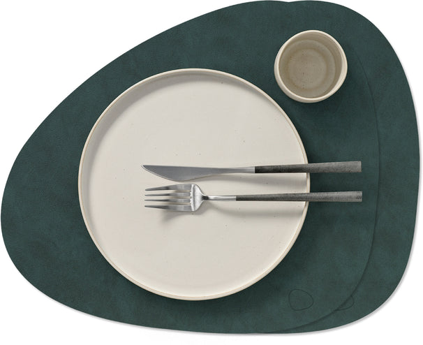 LIND DNA Placemats Nupo - Leather - Dark Blue - Curved - 44 x 37 cm - 2 pieces