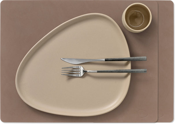 LIND DNA Placemats Nupo - Leather - Truffle - Curved - 44 x 37 cm - 2 Pieces