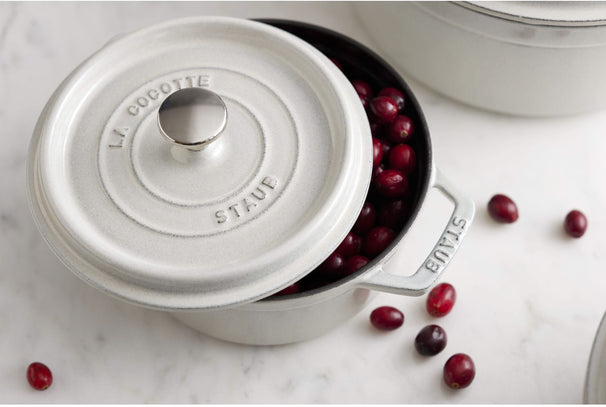 In addition to the excellent quality Staub is also known for its timeless and elegant design. The brand combines tradition with modern aesthetics, making the products look great not only on your stove, but also on the dining table. With their glossy colors and distinctive finish, the Staub pots and pans add a touch of style to any kitchen.