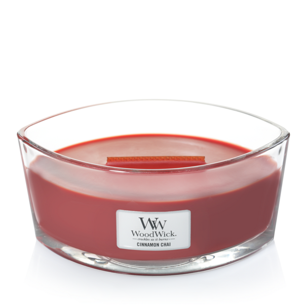 WoodWick Scented Candle Ellipse Cinnamon Chai - 9 cm / 19 cm - Scented Candle in Glass - Wooden Wick