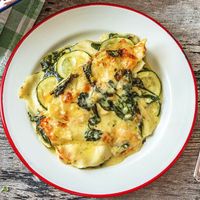 Vegetable lasagna with spinach and feta cheese