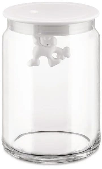 Discover the playful and functional Alessi Stockpot Gianni, designed by Mattia Di Rosa. This charming pot is not only a practical solution for storing your ingredients, but also a real eye-catcher in the kitchen. The distinctive design with a little man, Gianni, holding onto the lid, adds a touch of humor and whimsy. Made of high-quality glass with an airtight lid, this stockpot ensures your food stays fresh while adding style to your kitchen decor.