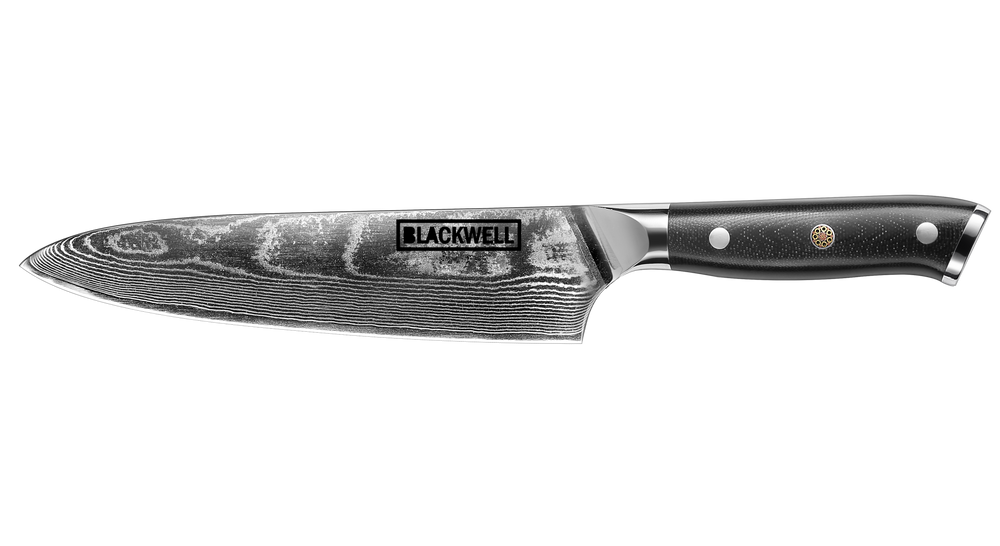 Discover it Blackwell Chef's knife Damascus, the perfect knife for both professional chefs and avid home cooks. This chef's knife combines traditional Japanese forging with modern precision and durability, making it an indispensable tool in any kitchen.