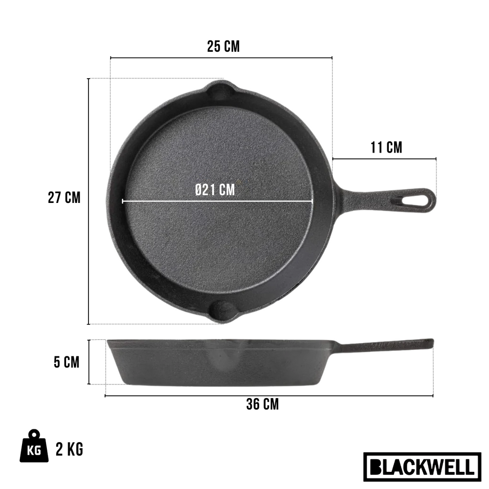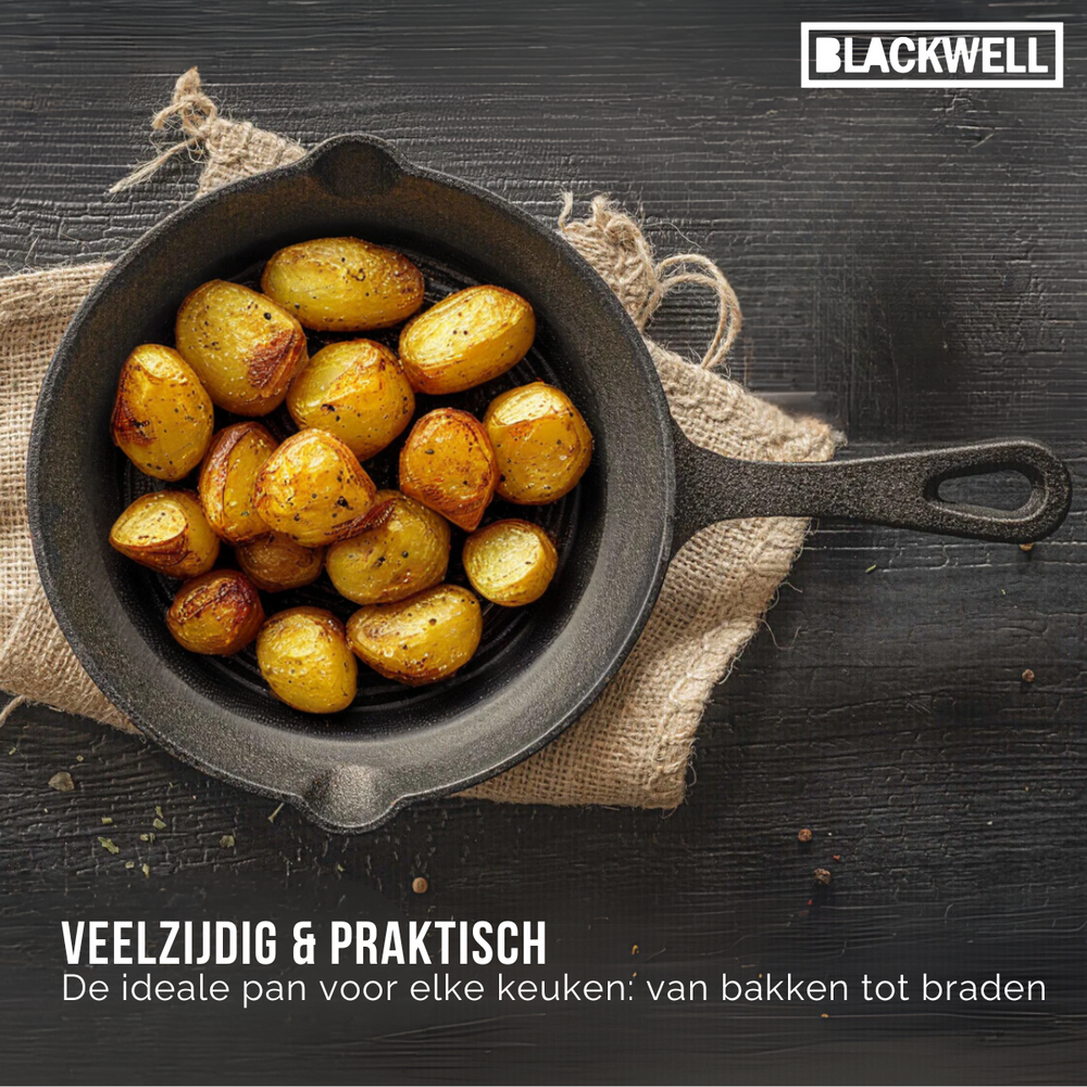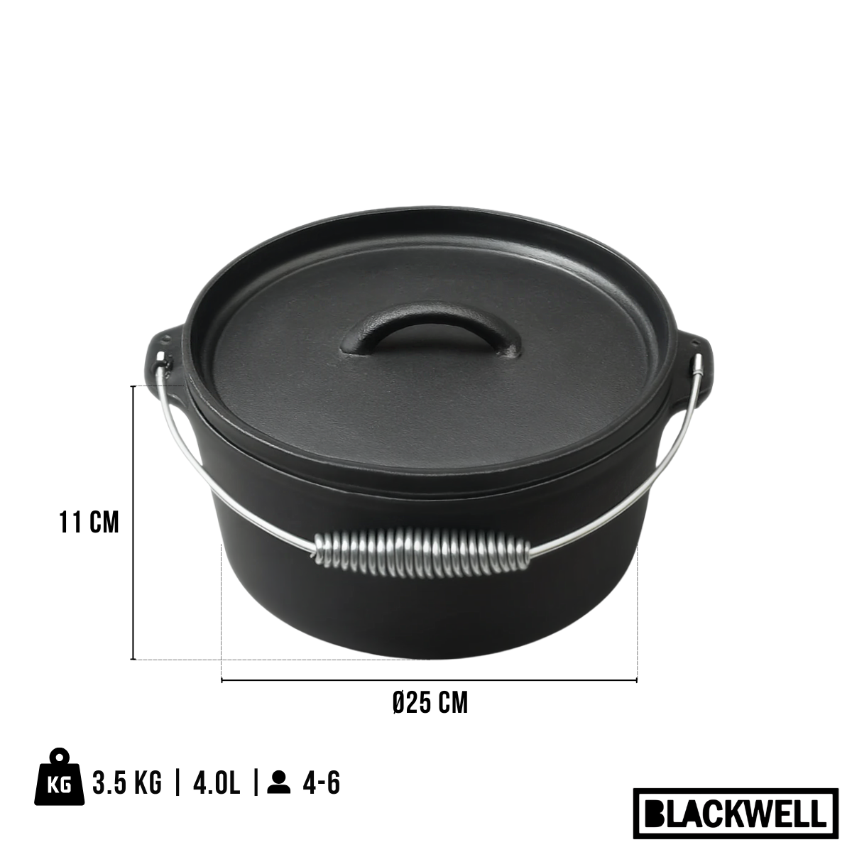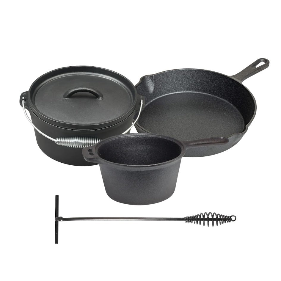 Blackwell Dutch Oven BBQ Set Cast Iron – Roasting Pan, Saucepan, Frying Pan & Lid Lifter