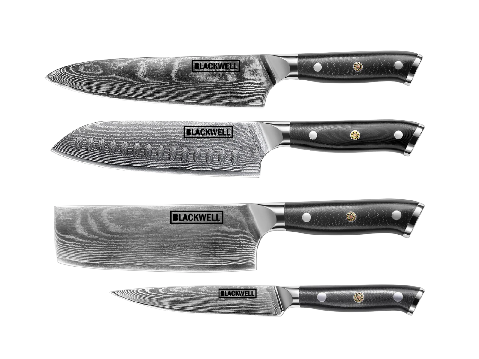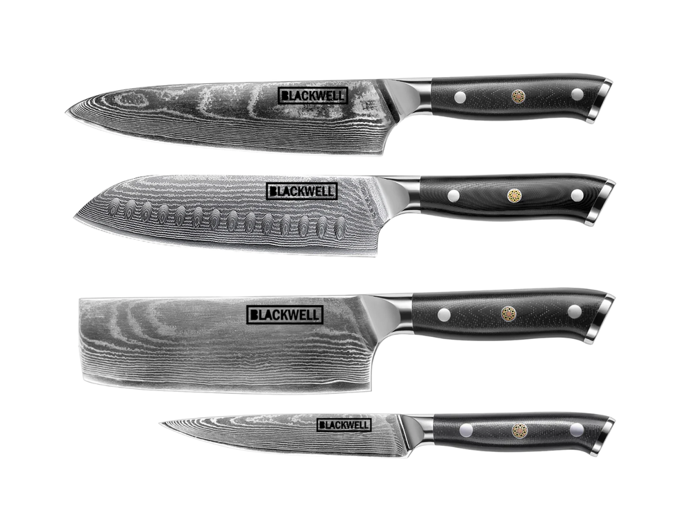 Description Blackwell Knife Set Damascus - Japanese style - 67 layers damask steel - VG10 - 4-piece