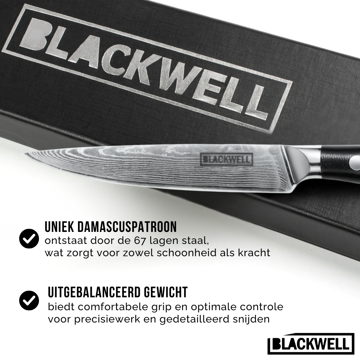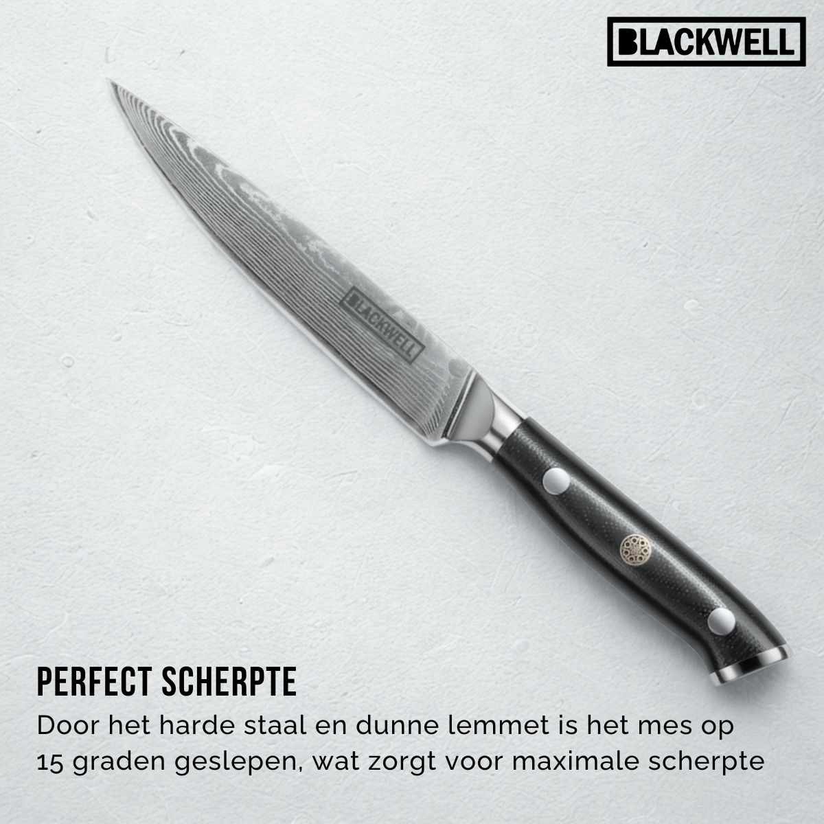 Whether you are preparing a simple meal or creating a culinary masterpiece, the Blackwell office knive Damascus is your go-to kitchen tool. Invest in this knife and experience the difference in your kitchen. This knife combines functionality with luxury, making it not only an essential tool, but also a beautiful addition to your kitchen equipment.