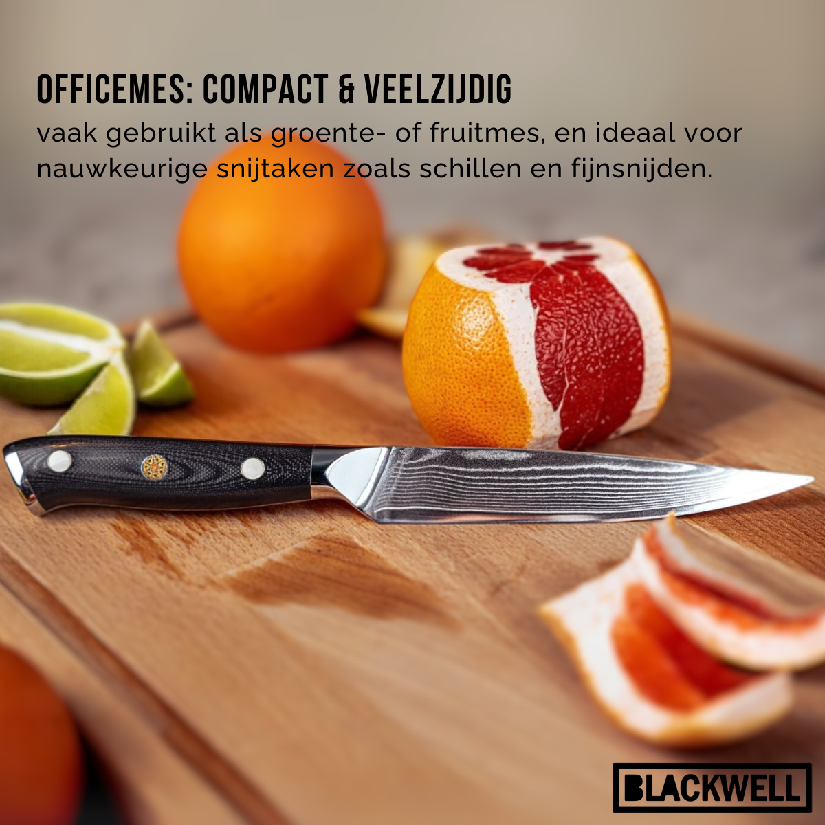 Whether you are preparing a simple meal or creating a culinary masterpiece, the Blackwell office knive Damascus is your go-to kitchen tool. Invest in this knife and experience the difference in your kitchen. This knife combines functionality with luxury, making it not only an essential tool, but also a beautiful addition to your kitchen equipment.