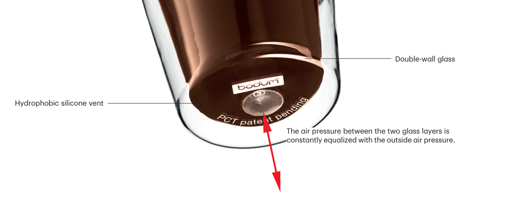 Through this valvethe Bodum double-walled glasses are less likely to break.