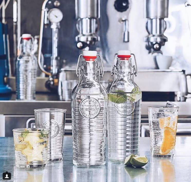 A beautiful siphon bottle from the Bormioli Officina collection for every household. The ridges in the glass and the logo on the bottle makes the bottle a real asset on the countertop. The Bormioli sug bottle Officina 1825 transparent has a capacity of 1.2 liters and can be ordered in different colors. In addition, matching glasses are available for purchase with each sug bottle.