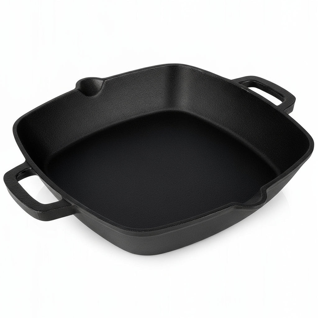 Cook with power and style thanks to this square cast iron baking dish of 25 × 25 cm with a capacity of 2 liters. Cast iron ensures even heat distribution and keeps your dishes warm for a long time — perfect for casseroles, stews, lasagna, or side dishes. Durable, robust, and ready for intensive use in the kitchen.
