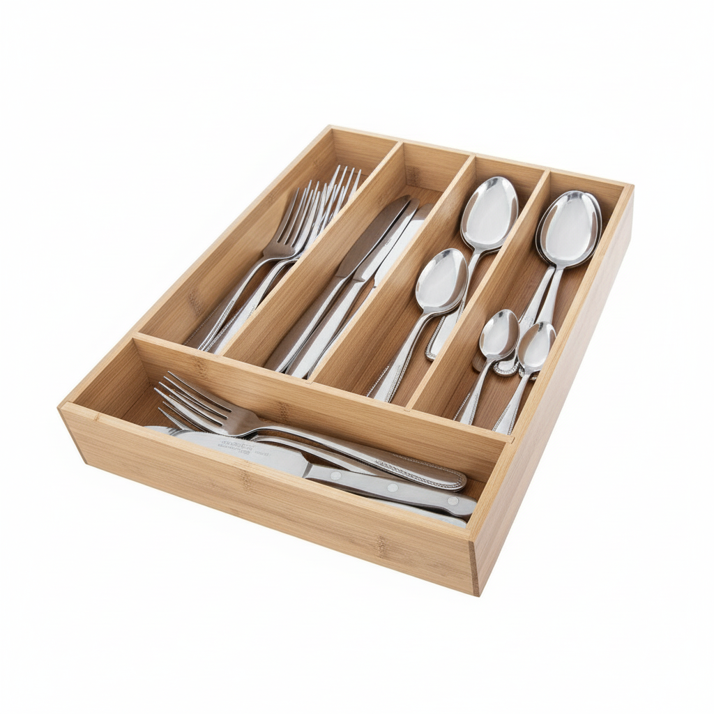 The cutlery tray is made of sturdy bamboo, a material known for its durability and warm appearance. It's a conscious choice for a reliable, long-lasting solution. Many users notice that their kitchen immediately becomes more organized and therefore experience more comfort while cooking. You can easily achieve that feeling too.