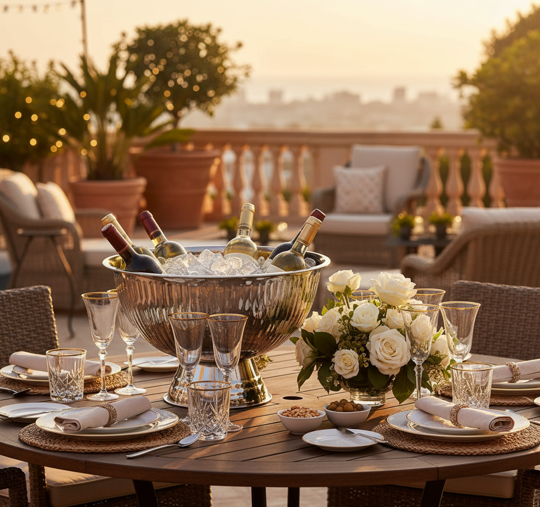 With this chrome-colored champagne bowl, you combine style and functionality for your festive moments. The bowl is designed to elegantly present multiple bottles or glasses — ideal for receptions or luxury dinners. Thanks to the shiny finish, your table will instantly look well-groomed.