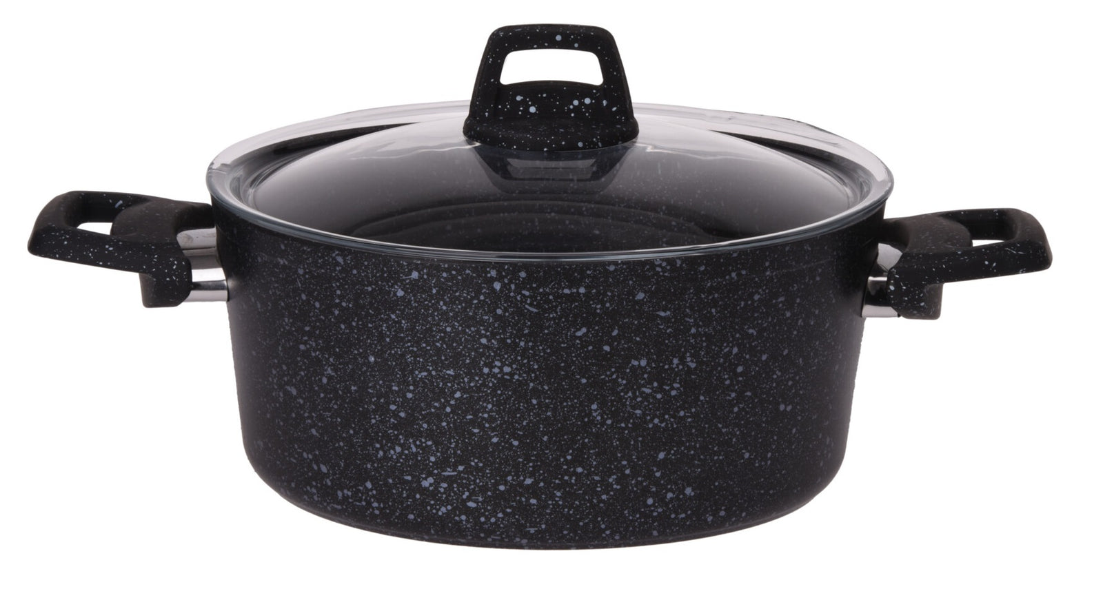 Cookinglife Cooking Pot with Lid - Black Speckle - Aluminum Ø 22 cm / 3.5 Liters - Suitable for all heat sources - standard non-stick coating