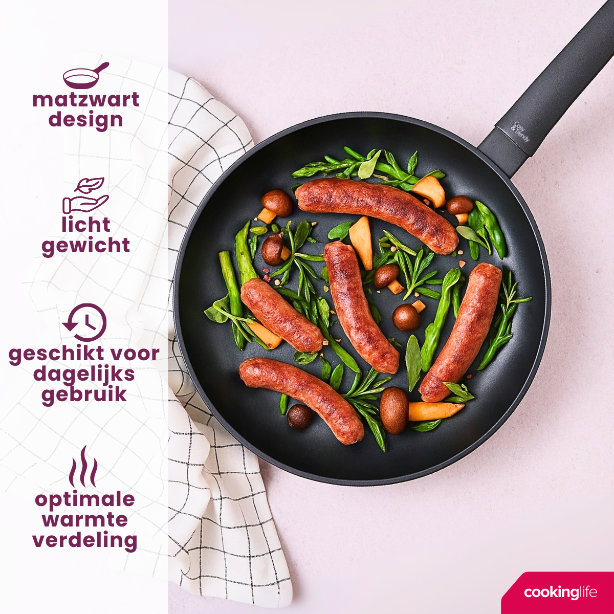 Cookinglife Frying Pan Black Cera – Ø 24 cm – Ceramic non-stick coating – PFAS-free