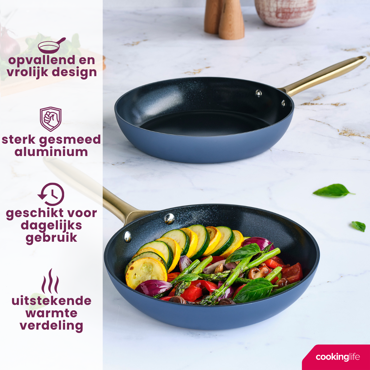 Cookinglife Frying Pan Set Style Blue – Ø 24 & Ø 28 cm – Ceramic Non-stick Coating