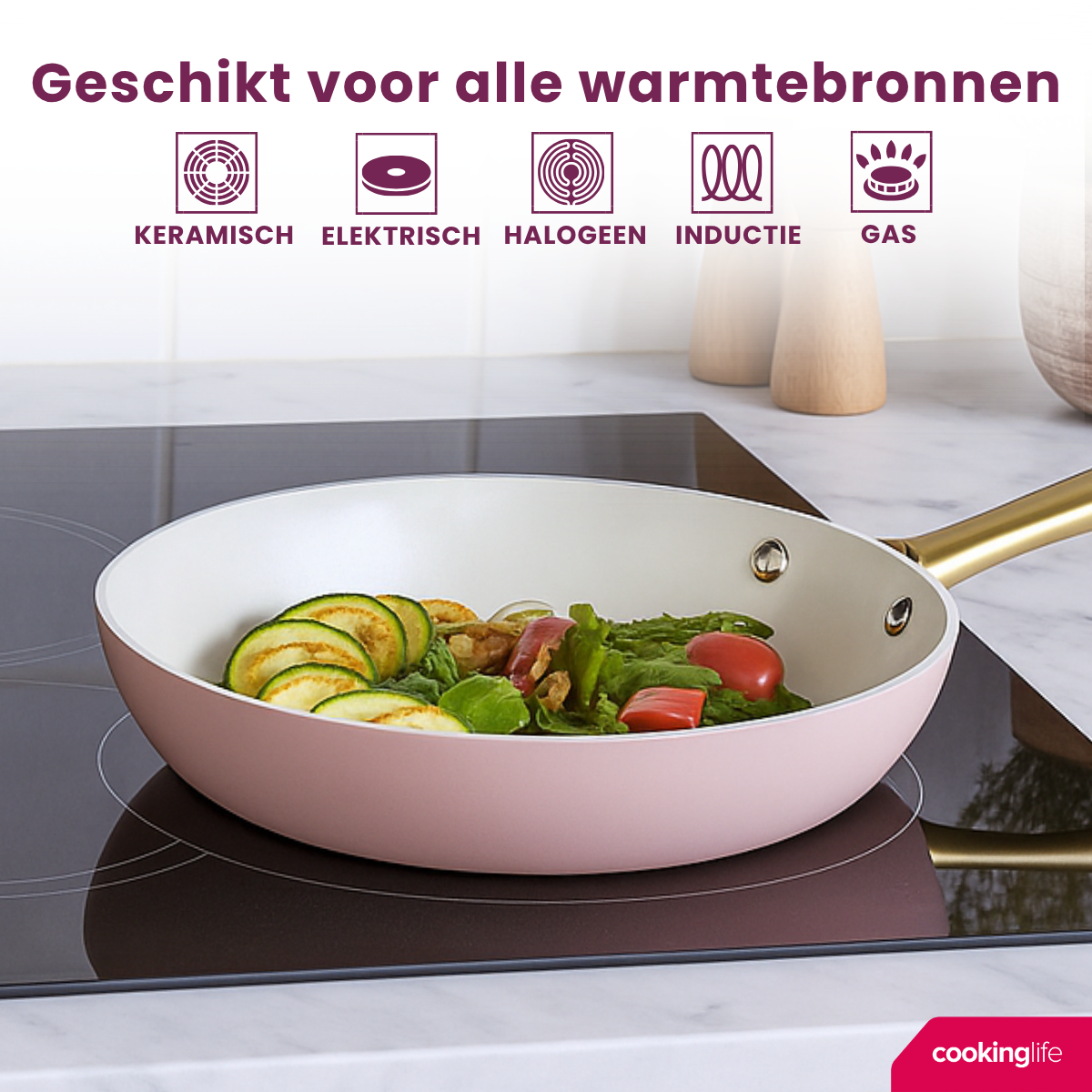 Cookinglife Frying Pan Set Style Green – Ø 24 & 28 cm – Ceramic Non-stick Coating