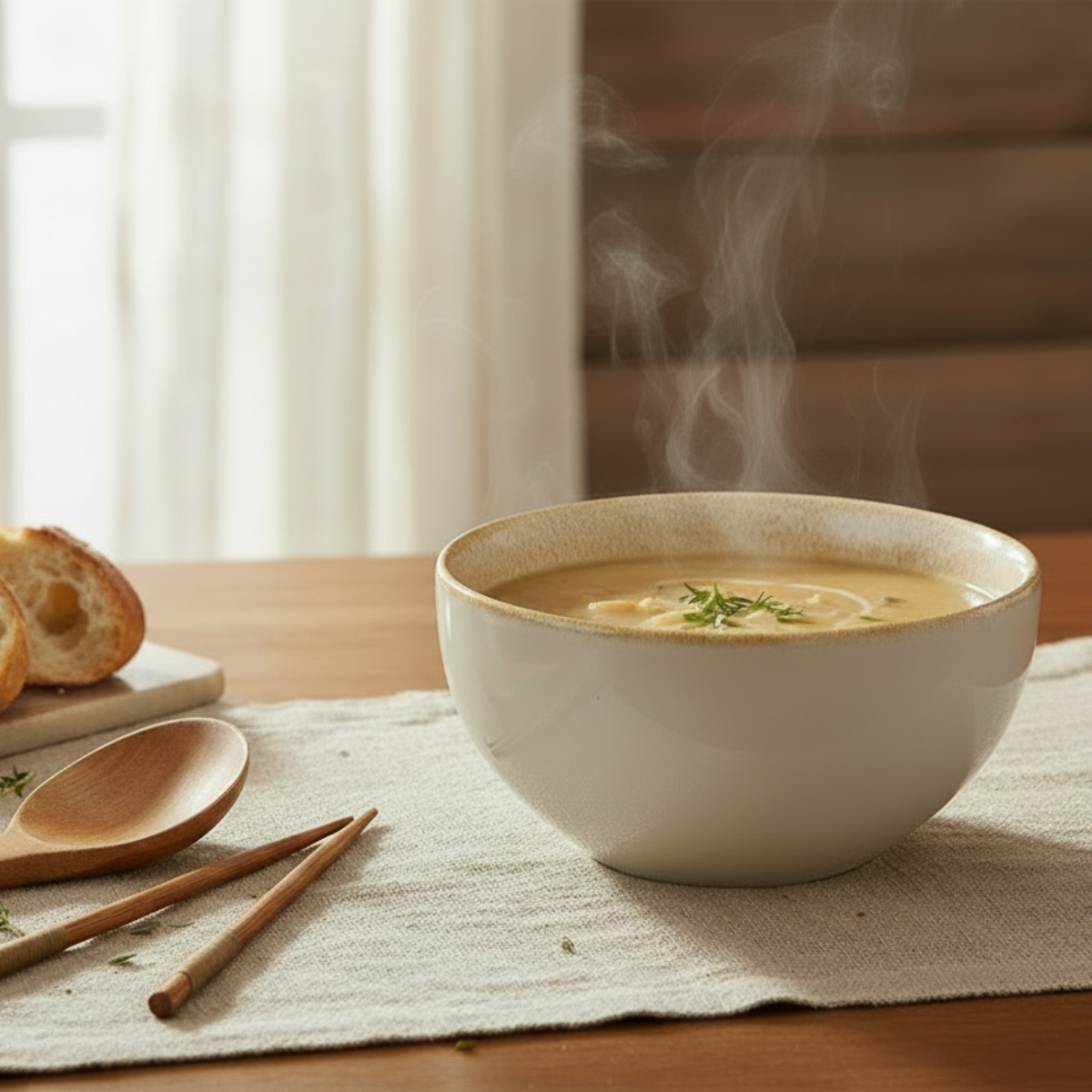 💡 Cookinglife Tip: Serve fish soup or broth directly at the table and garnish with fresh herbs and a squeeze of lemon — the warm sand tone makes the presentation even more inviting.