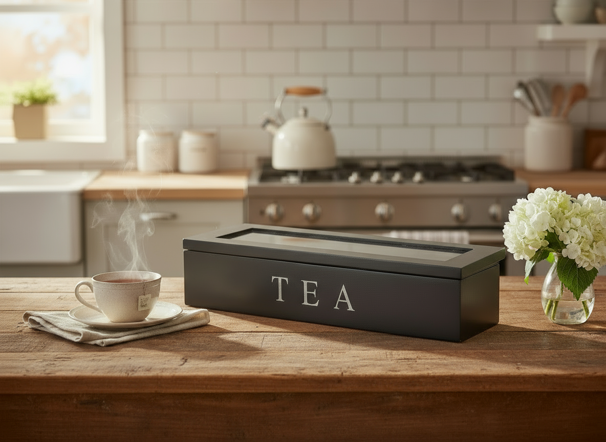 With this black tea box from Cookinglife, you can neatly and clearly organize your tea bags. Thanks to the six compartments, you can easily separate different flavors, so you can always quickly find what you're looking for. The timeless, dark design looks great in any kitchen or on a cozy set table. This way, you can make every tea moment something special.