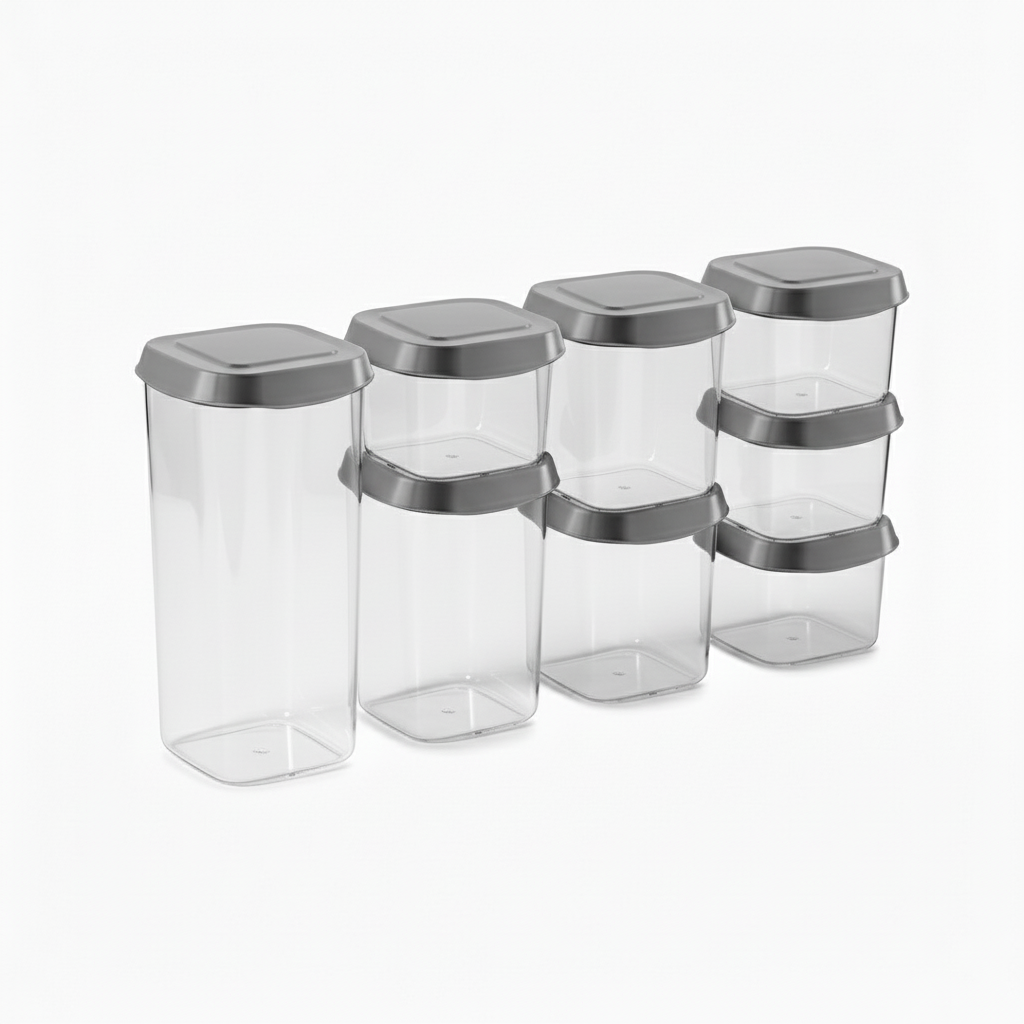 Cookinglife 8-Piece Storage Jar Set – With Gray Lids