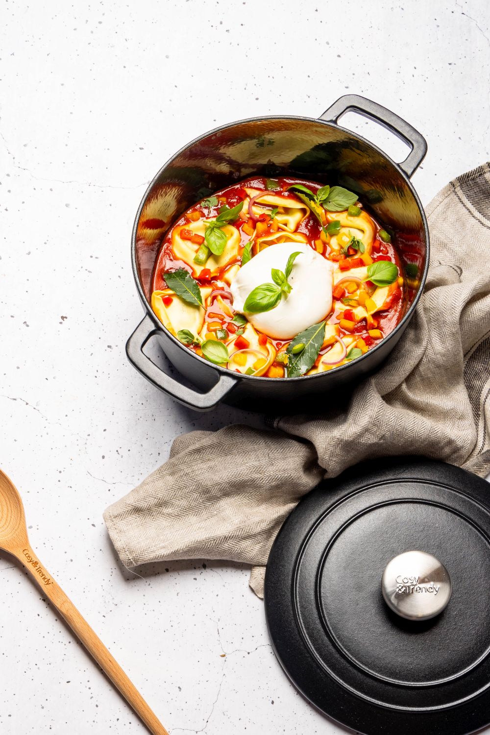 The enamelled interior ensures perfect heat distribution and prevents food from burning