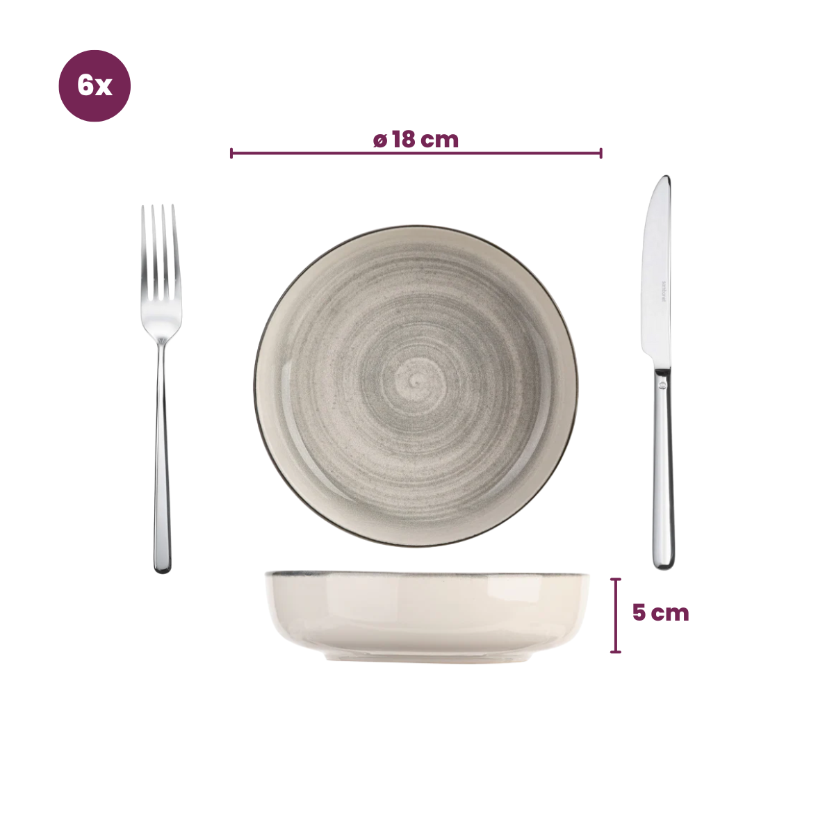 Serve your guests a delicious dinner with these stylish deep plates from the Cosy & Trendy Baltic collection! The plates are made of stoneware, giving each plate a unique pattern. The plates are gray in color and have a diameter of 18 centimeters. In addition to being microwave safe, they can also be easily placed in the dishwasher after use!
