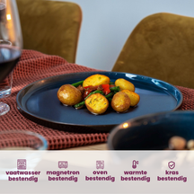The Cosy & Trendy Quintana dinner plates with a diameter of 28 cm have a beautiful blue color that is combined with a gradient of amber shades. The plate is made of porcelain, which makes it extra sturdy. Due to the durable material, it is also suitable for the microwave and the oven. After use, the entire collection of Cosy & Trendy Quintana can be placed in the dishwasher.