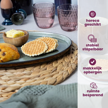 These Cosy & Trendy Quintana dinner plates with a diameter of 28 cm have a beautiful green color that is combined with a gradient of amber shades. The plate is made of porcelain, which makes it extra sturdy. Due to the durable material, it is also suitable for the microwave and the oven. After use, the entire collection of Cosy & Trendy Quintana can be placed in the dishwasher.