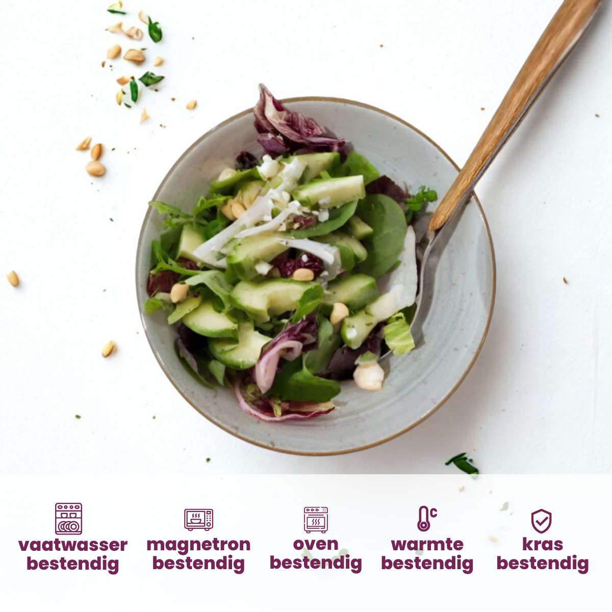 The Sintra Dusty Blue collection is inspired by the serene and calming colors of nature, resulting in a tableware line that is both modern and timeless. Each bowl is made from high-quality stoneware and finished with a reactive glaze, giving each piece a unique color nuance. Thanks to the sturdy material, the bowl is resistant to daily use and suitable for both the microwave and the dishwasher, enhancing usability.