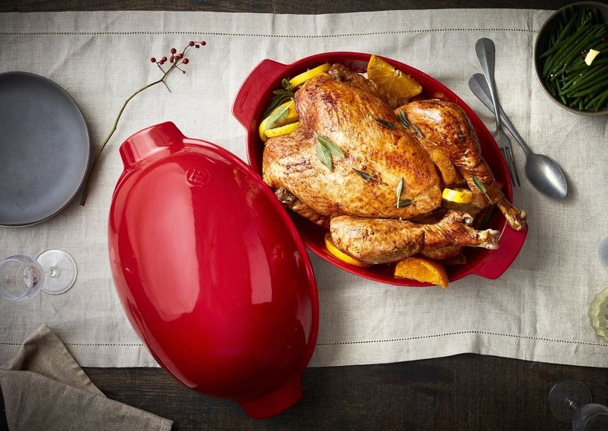 - 1× Emile Henry Roaster Chicken Grand Cru 42 × 28 cm (8 L)
