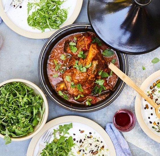 Prepare and serve authentic North African dishes in this beautiful tagine from Emile Henry. The sturdy ceramic dish and conical lid keep steam and flavor optimally inside, resulting in tender vegetables and meat. Thanks to the unique Flame color Fusain, your table gets a contemporary, rugged look. You can use the tagine directly on gas, ceramic, or electric cooktops, and it transitions effortlessly from stove to oven or table. After use, it is easy to clean in the dishwasher.