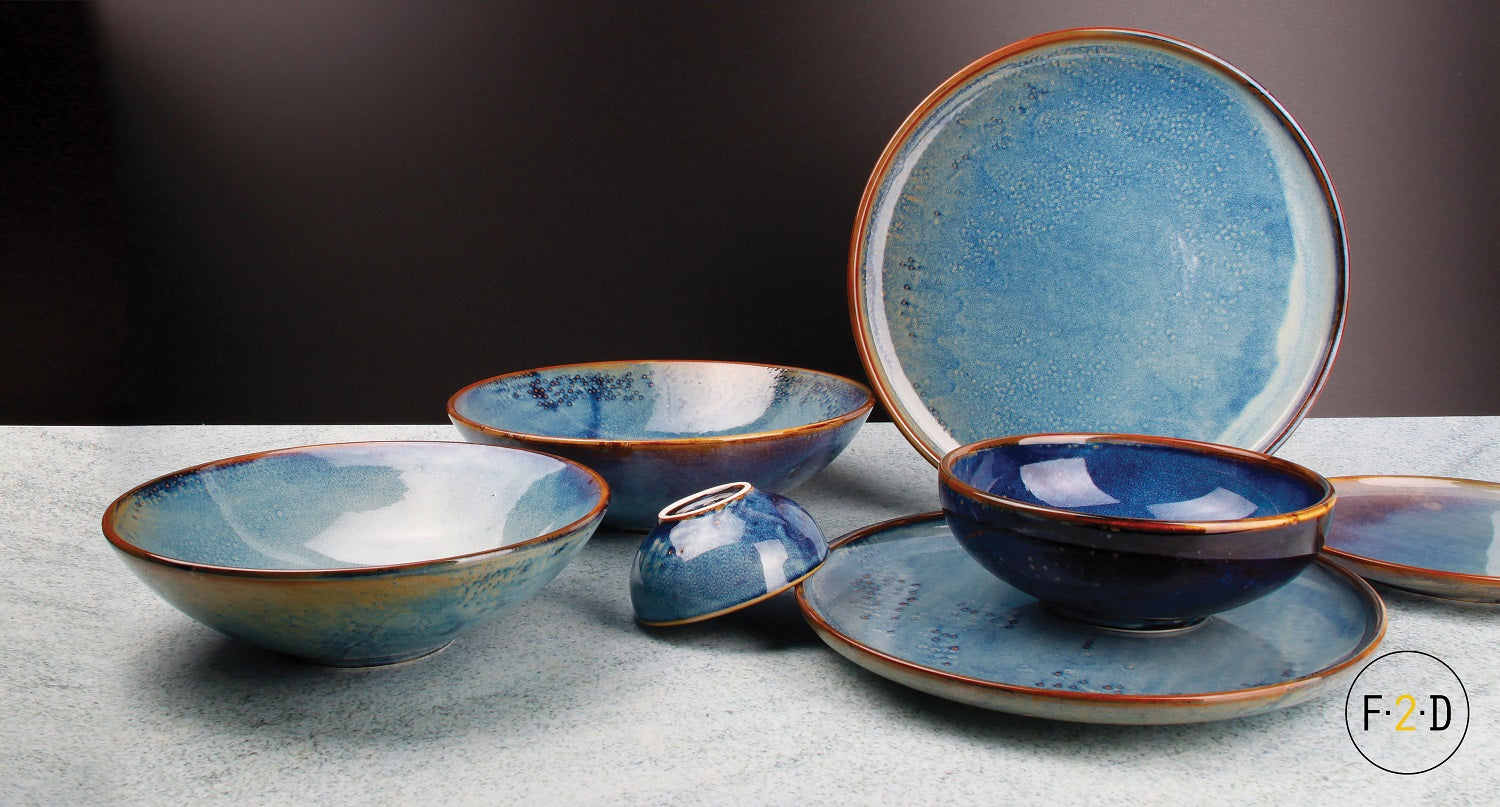 Due to the reactive glazing technique, color and pattern may vary per plate, adding to the unique charm of each piece.