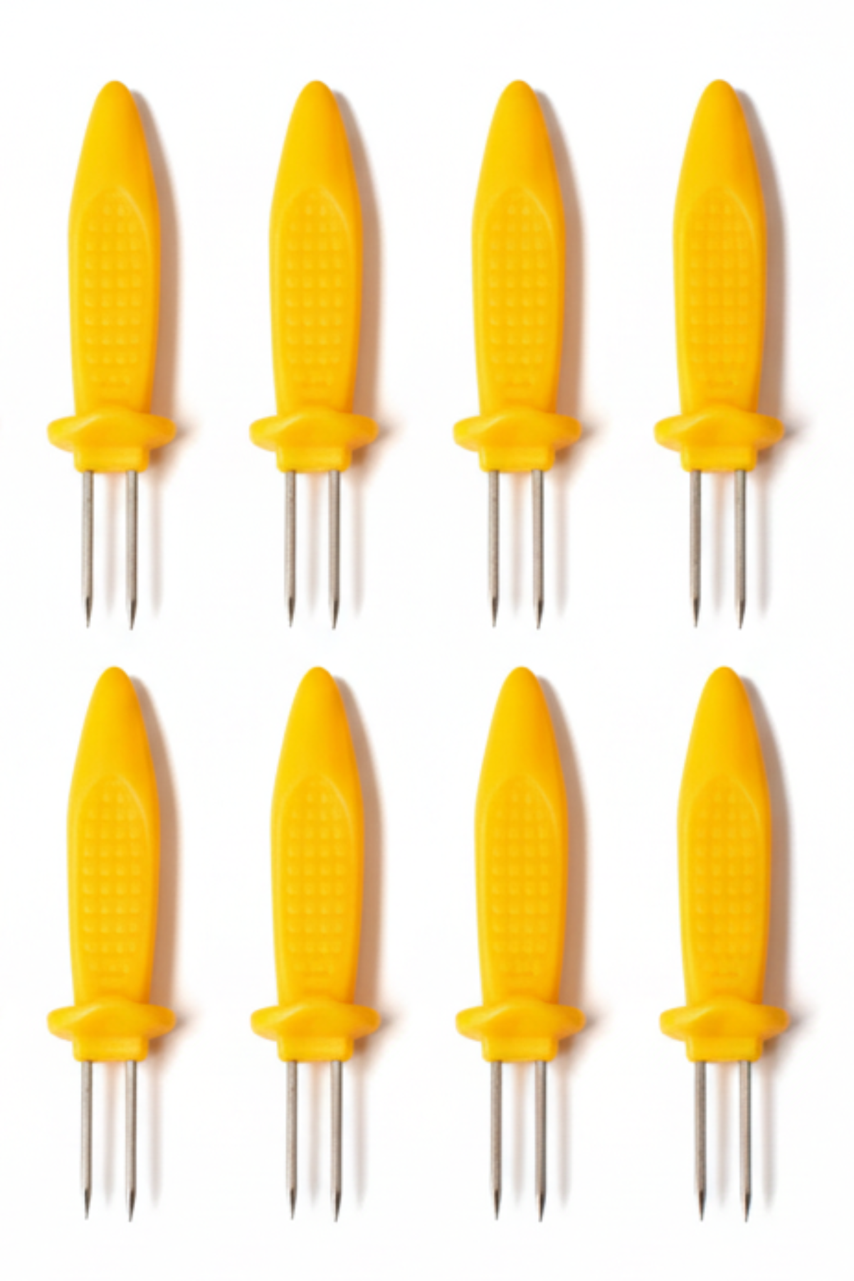 - 8x Grill Fanatics Corn Cob Holders (stainless steel prongs with yellow plastic handles)