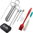 - Includes a set of injection needles, cleaning brushes, and a marinade brush