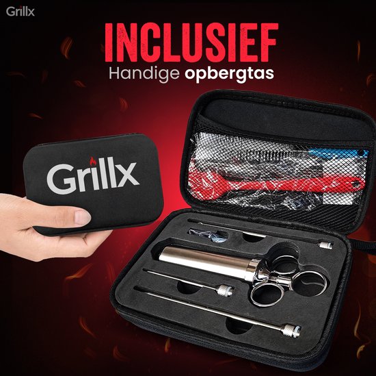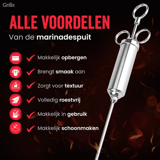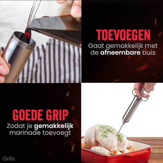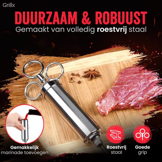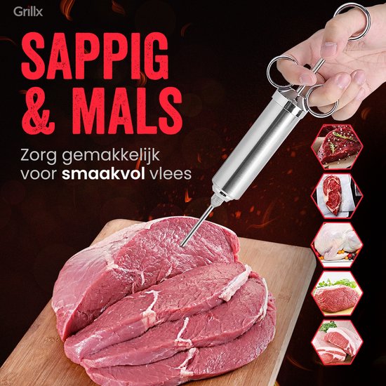 Take your dishes to the next level and enjoy the delicious flavor sensation with the GrillX Luxury Marinade Injector. Order now and discover all the benefits of this handy tool!