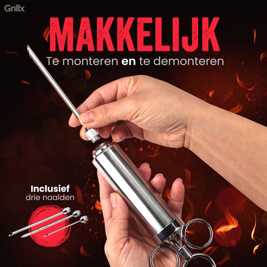 With the GrillX Luxury Marinade Injector, you can give your meat a flavorful upgrade. This handy injector is specially designed to inject delicious liquids into your meat, such as marinades, butter, and brine. With three different needles, you can keep any type of meat juicy while roasting or barbecuing.