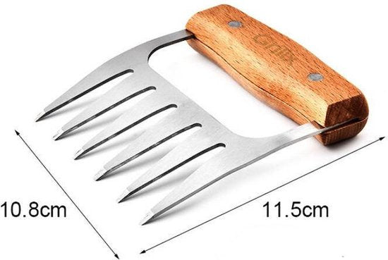 With these meat claws featuring a wooden handle, preparing meat becomes a true pleasure! The package includes 2 claws, made from sustainable wood and stainless steel. The razor-sharp teeth of the claws effortlessly tear the meat apart.