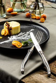The stylish Laguiole cutlery set is designed and manufactured in France. The cutlery is beautifully designed and has a classic look due to the elegant decorations on the handle. The cutlery is made of high-quality stainless steel and has a sturdy handle that fits comfortably in the hand. The cutlery set is suitable for six people and consists of 24 pieces. The Laguiole cutlery set comes in a wooden cutlery case.