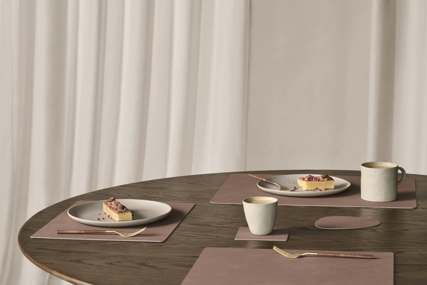 The LIND DNA Placemats Nupo – Old Rose – 45 x 35 cm – 2 Pieces give your dining table a warm, refined look. Made from real leather, 80% recycled leather and 20% natural rubber. These placemats have a beautiful leather surface and a soft, supple texture. The subtle Old Rose color adds an elegant accent and protects your table from scratches, heat, and stains.