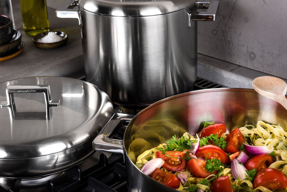 With the Mepra Cookware set Pininfarina you not only add high-quality cookware to your kitchen, but also a touch of luxury and elegance. From stylish handles to clean lines, every detail has been thoughtfully designed to enrich your cooking environment. Be inspired by the timeless design and take your cooking skills to the next level while enjoying the ultimate cooking experience.