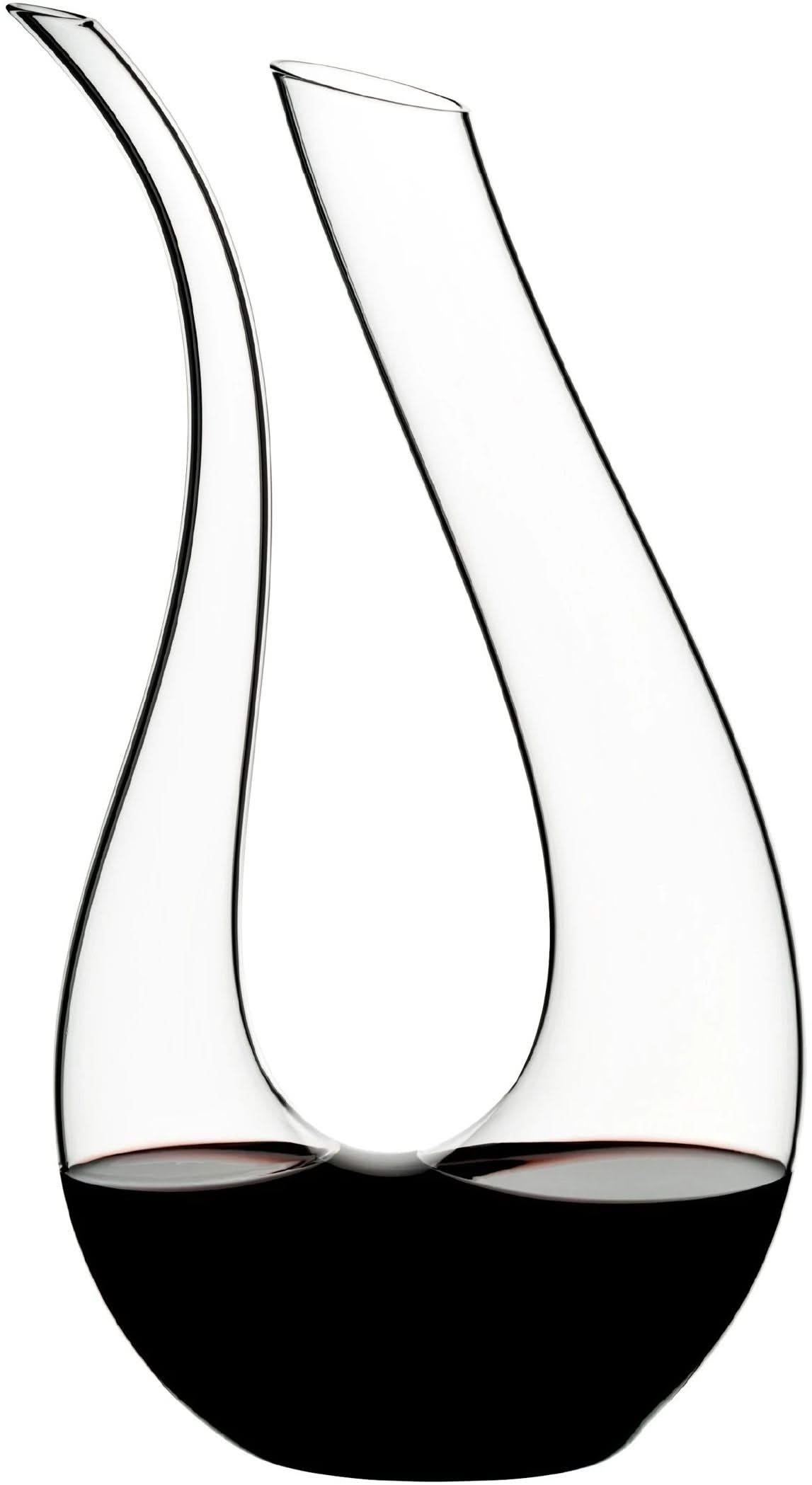 The Riedel Amadeo Decanter is a true eye-catcher on the table, combining a sculptural design with optimal functionality. This handcrafted decanter is inspired by the shape of a lyre and was designed in honor of Riedel's 250th anniversary. Its wide surface allows the wine to receive maximum oxygen, allowing young wines to develop quickly and older wines to regain their clarity and finesse.