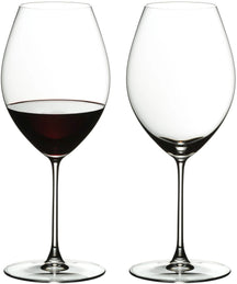 With the wine glasses from the collection Riedel you get real high quality glasses in the house. The glasses are made of ultra-thin crystal glass which is very light. The Riedel Old World Syrah Wine Glasses have an egg-shaped chalice, which provide a perfect balance between the fruity and pepper and spice aromas of the red wine. This wine glass is made for red wines with gripping tannins and medium body. Suitable grapes include the following: