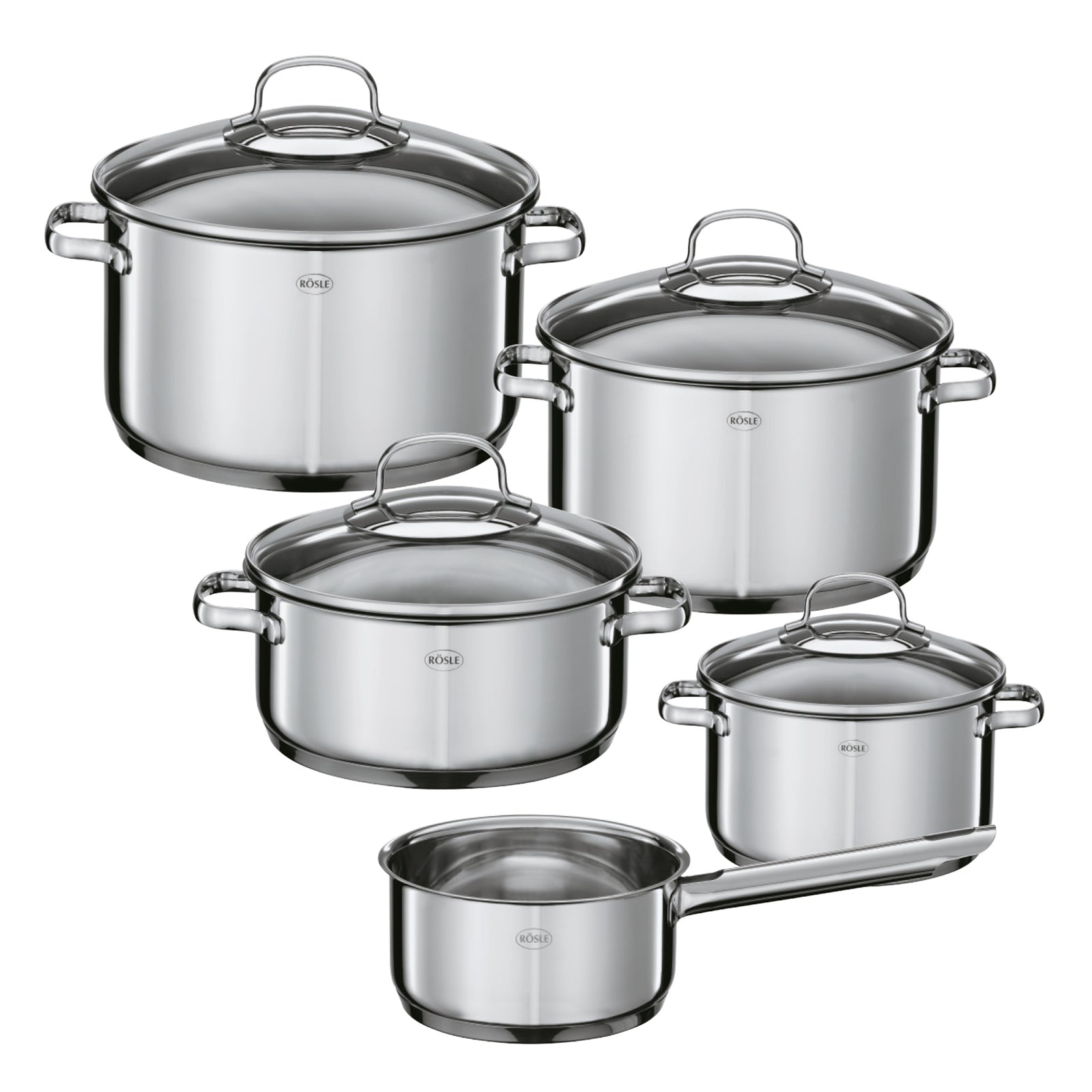 • Rosle Cookware Set Elegance - Cooking Pots + Lids & Saucepan - 5 Pieces