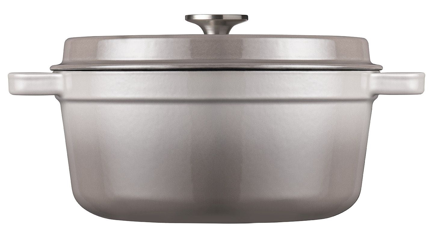 The Sola casserole with lid in grey combines a rugged look with practical quality. Made of enameled cast iron, this pot ensures even heat distribution and flavor retention. With its generous size of 28 cm and a capacity of approximately 5 liters, it is ideal for stews, soups, or casseroles. The pot is suitable for all heat sources and features a stylish stainless steel knob on the lid.