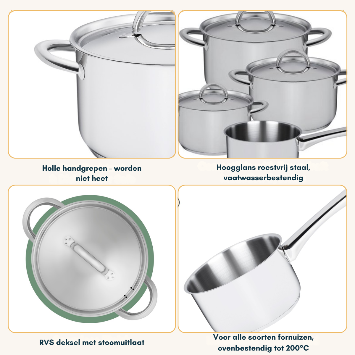Can you too enjoy putting delicious meals on the table? That's where the Sola Blizz Cookware set Blizz! This Cookware set consists of three stainless steel cooking pans and one sauce pan. These pans are suitable for use when cooking on gas, induction, ceramic, electric and halogen hobs. The low price, yet high quality makes this set ideal to use as a starter set. Also nice: after use, the set can be cleaned in the dishwasher.